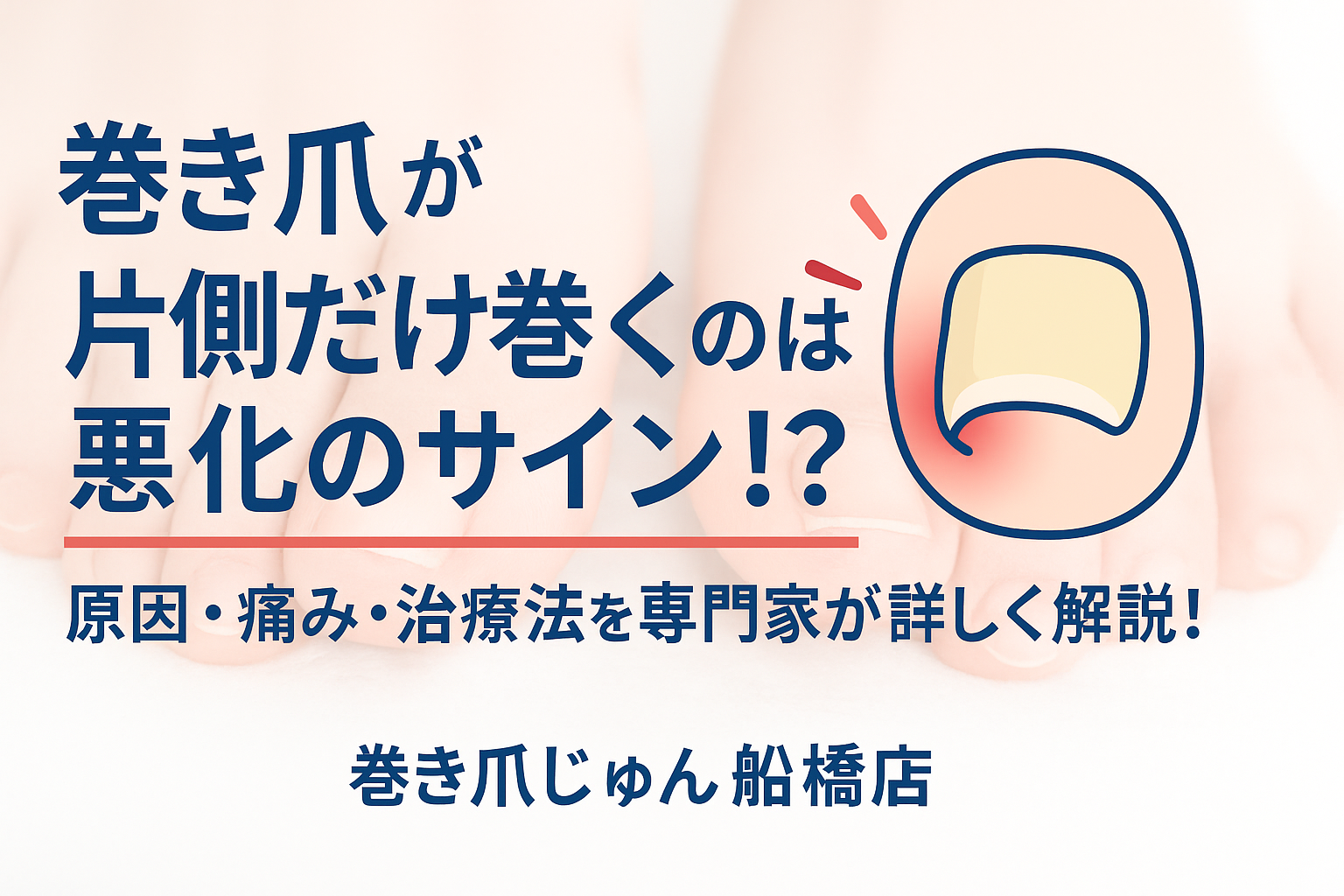 【巻き爪 片側だけ】片側だけ巻く「片巻き」は悪化サイン?原因と治療法を専門家が解説|巻き爪じゅん船橋店